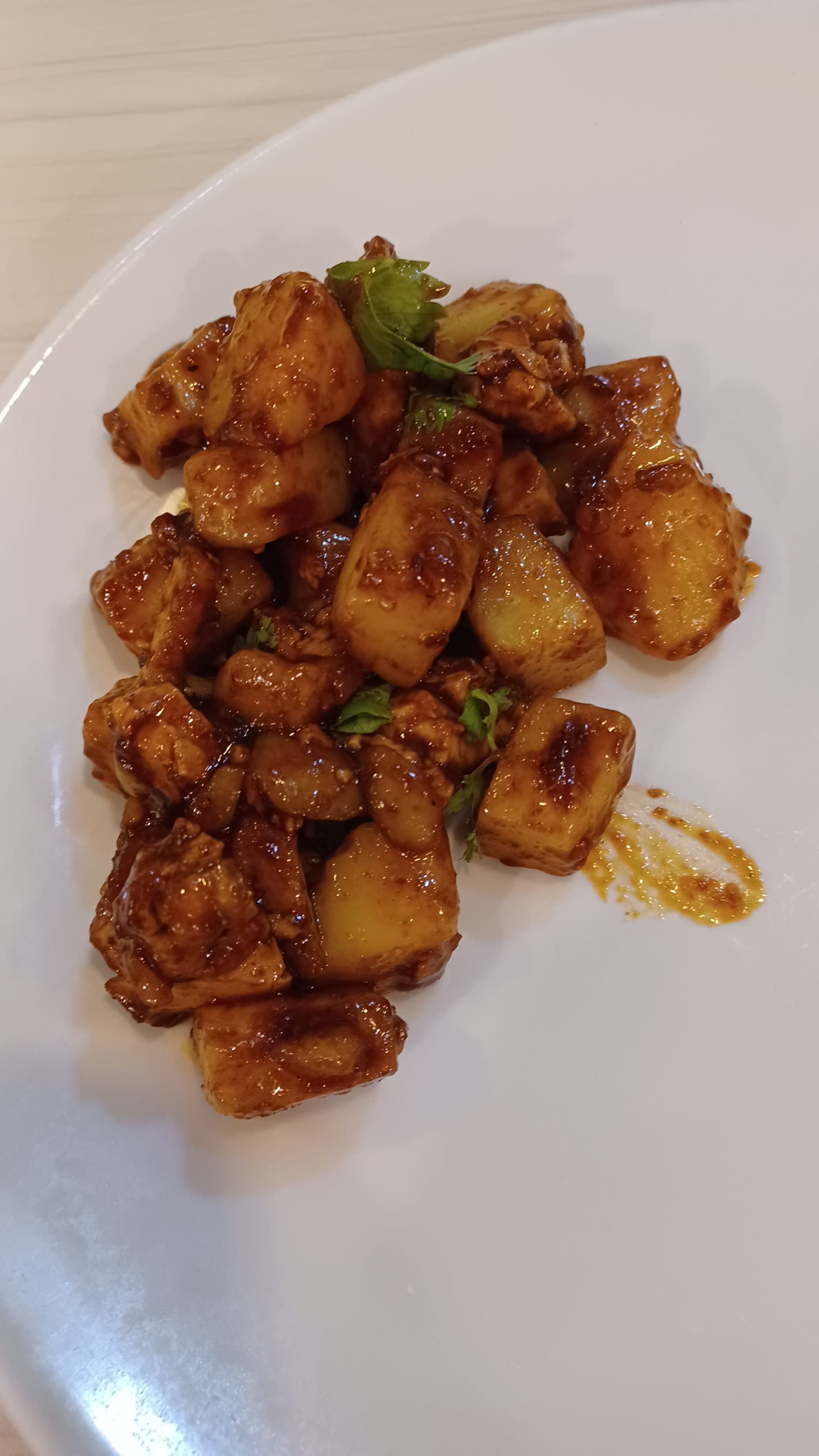 I went here for dinner, and the food was amazing. A lot of traditional Singaporean and Chinese dishes, all made vegan. I had: