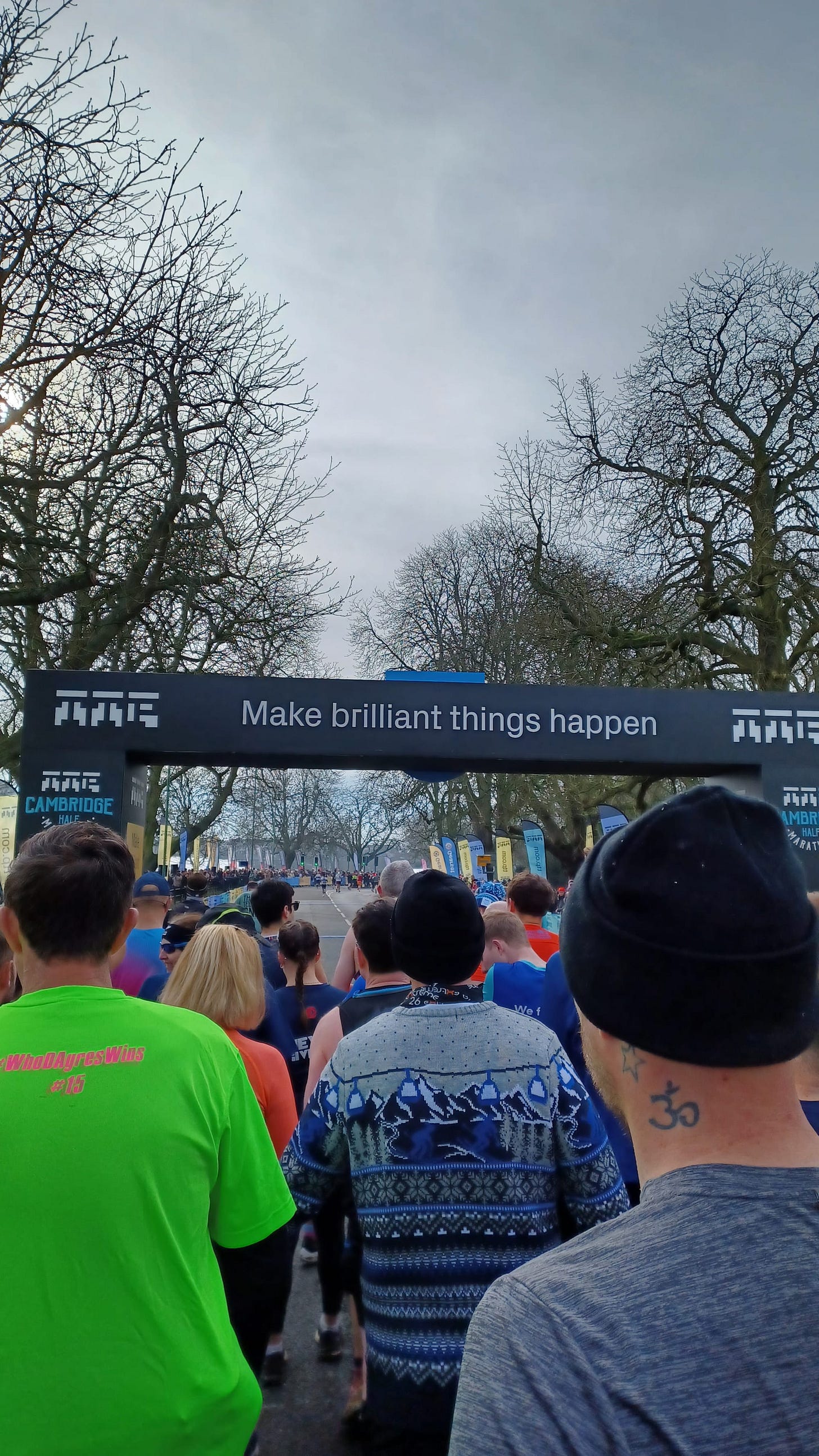 Do check the weather beforehand, March in the UK can either mean snow or sunshine! Luckily the weather was kind to us on that weekend, showing sunny intervals. That being said, it had rained the entire week beforehand, so Midsummer Common was a bit of a swamp in some places. It was still pretty cold too, hovering just above freezing - so do pack your race clothes and warm clothes appropriately. Spare shoes were essential to have post-race to keep my feet warm and dry.