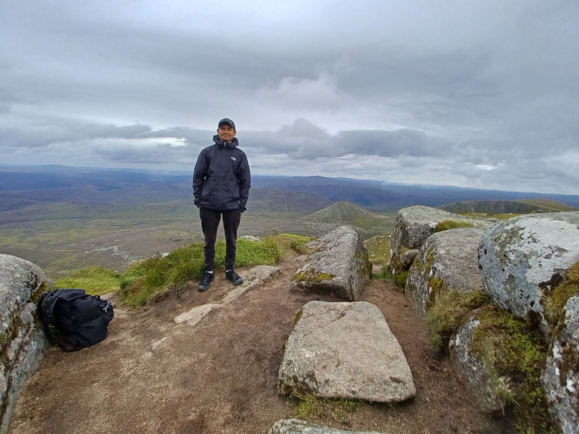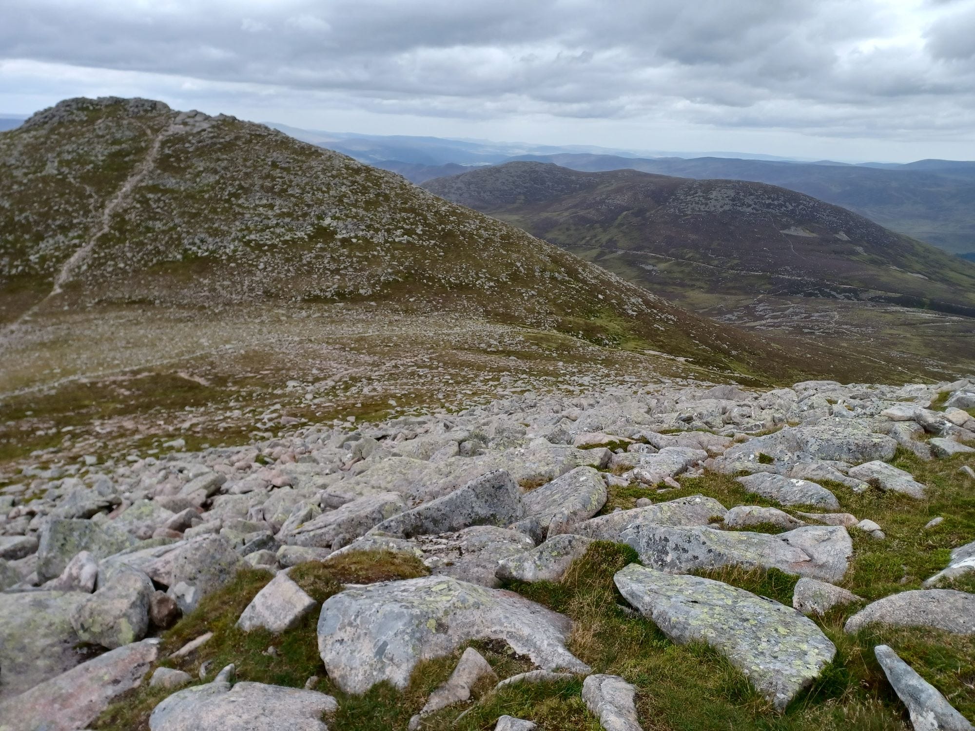 The path then began to wind upwards, and the wind started getting stronger. It was pretty much an uphill trek from now on until we reached the summit, and the path beneath us became more rocky. Vegetation changed from the green fields to moss and lichen. My legs were certainly beginning to feel fatigued, it was like doing the stair master in the gym on a loop (but with way better scenery of course!). The land started to flatten out eventually, and we could see the summit in our sights! The last section to reach the top was a lot of scrambling (climbing over large rocks as there was no real path), but in the early afternoon we got to the top of Lochnagar! The wind was crazy up there, even taking out your phone to snap some pictures was risky, but the large boulders at the top provided some sort of shelter which gave a excellent spot for lunch :) The photos below are from the top, but honestly they don't do it justice!