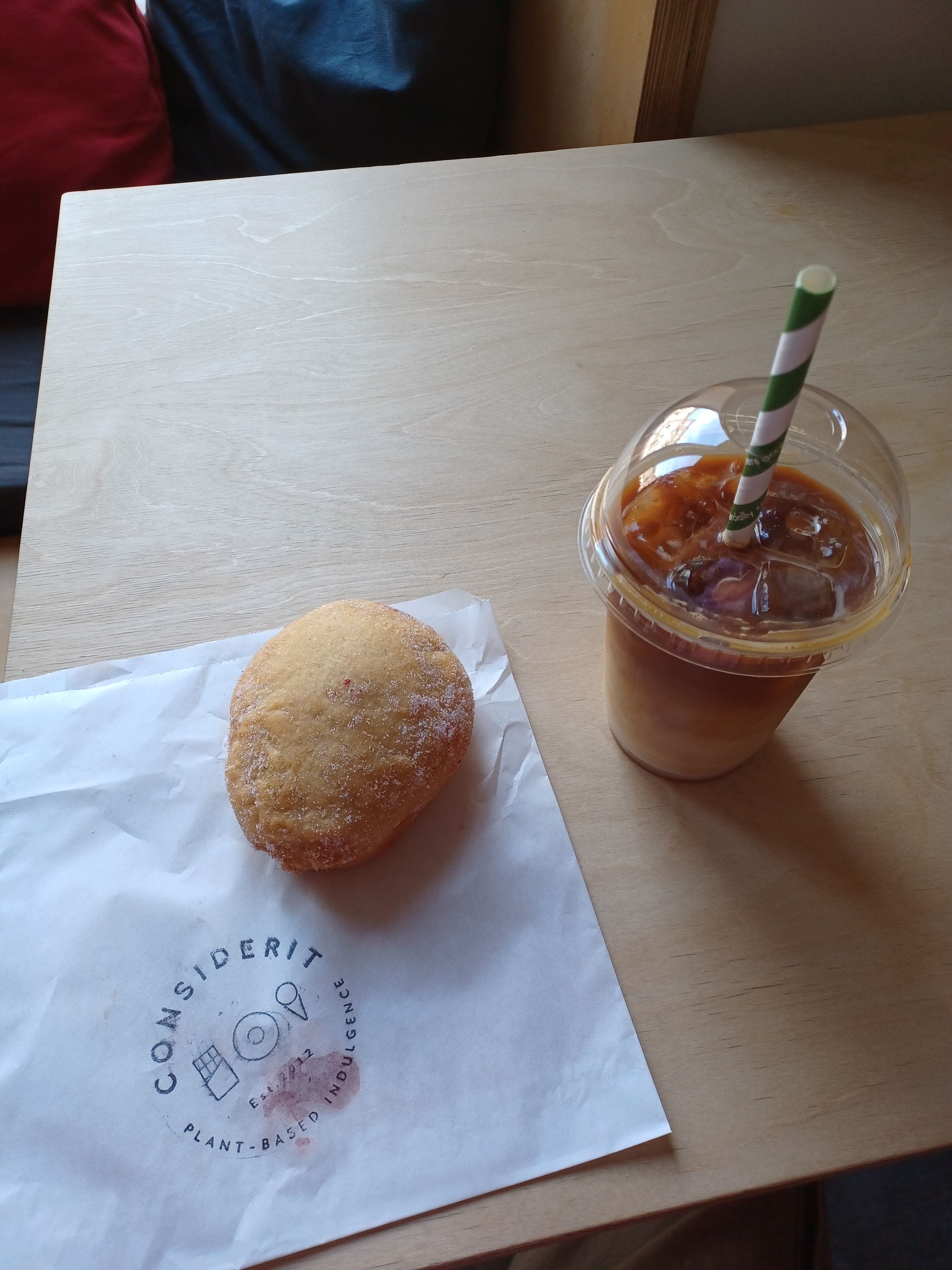 All this exercise got me thinking about food, and so I visited a vegan dessert place that was recommended to me by my friend called ConsiderIt. They did all sorts, but what I was interested in was the fresh donuts that were baked daily. I got there mid-afternoon, and saw that there was a queue going out of it! That's when you know it's a good place to get some food. I ordered a jam filled donut with an iced latte and was not disappointed! Both the donut and coffee were really tasty, and was nice to see that the vegan options for our favourite desserts were on-par, if not better, than the original!