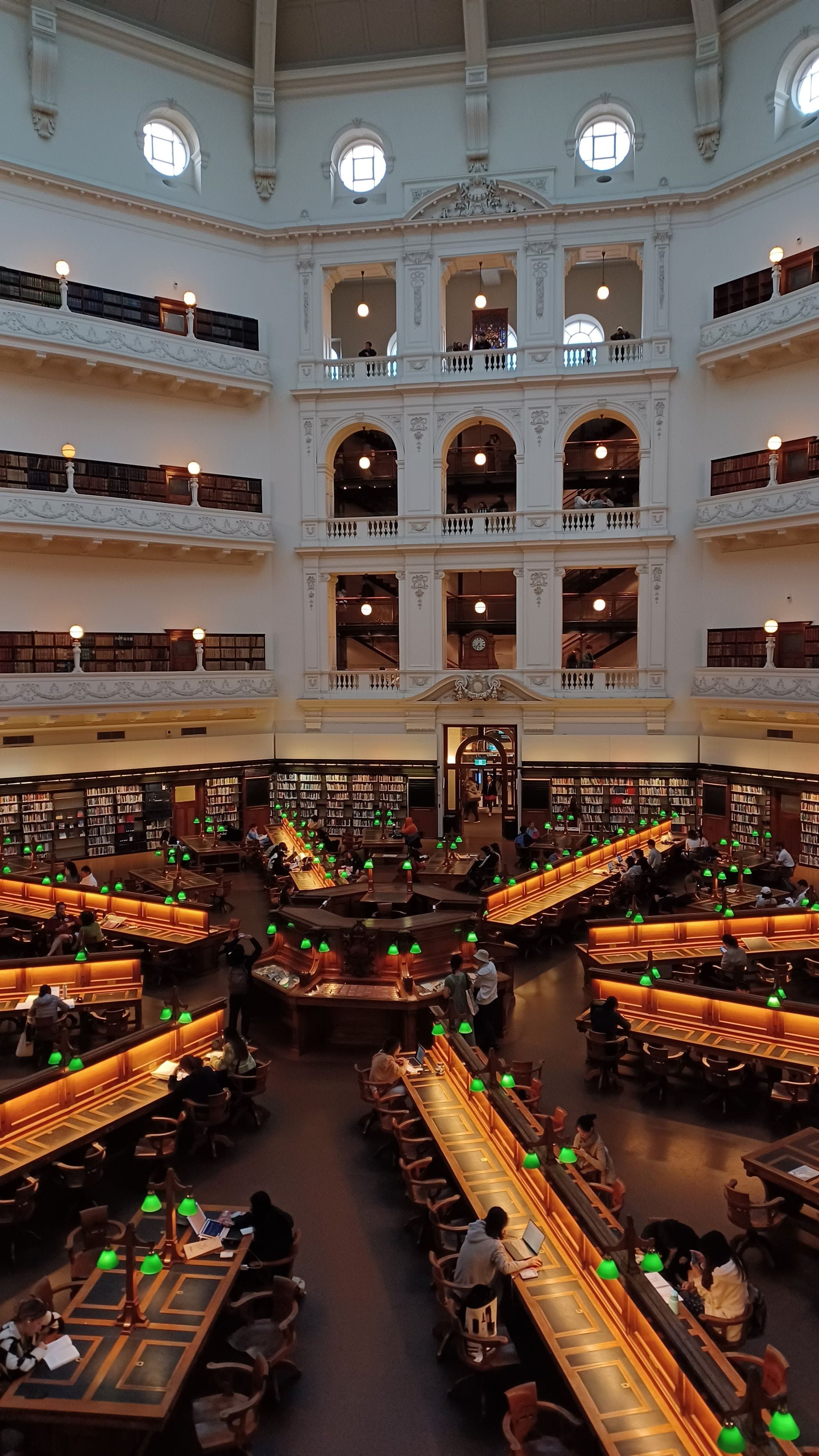 Tired of your usual study spot and looking for somewhere else to revise? Look no further than the State Library of Victoria! Established in 1854, it is Australia's oldest public library. I visited during my mid-semester break, to both study and also take a look around. First impressions when you walk in, you realise how vast the library is - there is a huge amount of study space of all types, as well as exhibitions on other floors. I barely covered any of it during my trip, so another trip is required! If you're going there to study, I would highly recommend studying in The Dome (formally known as the La Trobe Reading Room). The ambiance is really nice, with the desks extending out from a central point and the green lamps and huge space giving the space some character. Despite being a space that is open to the public, the quiet study environment is maintained.
