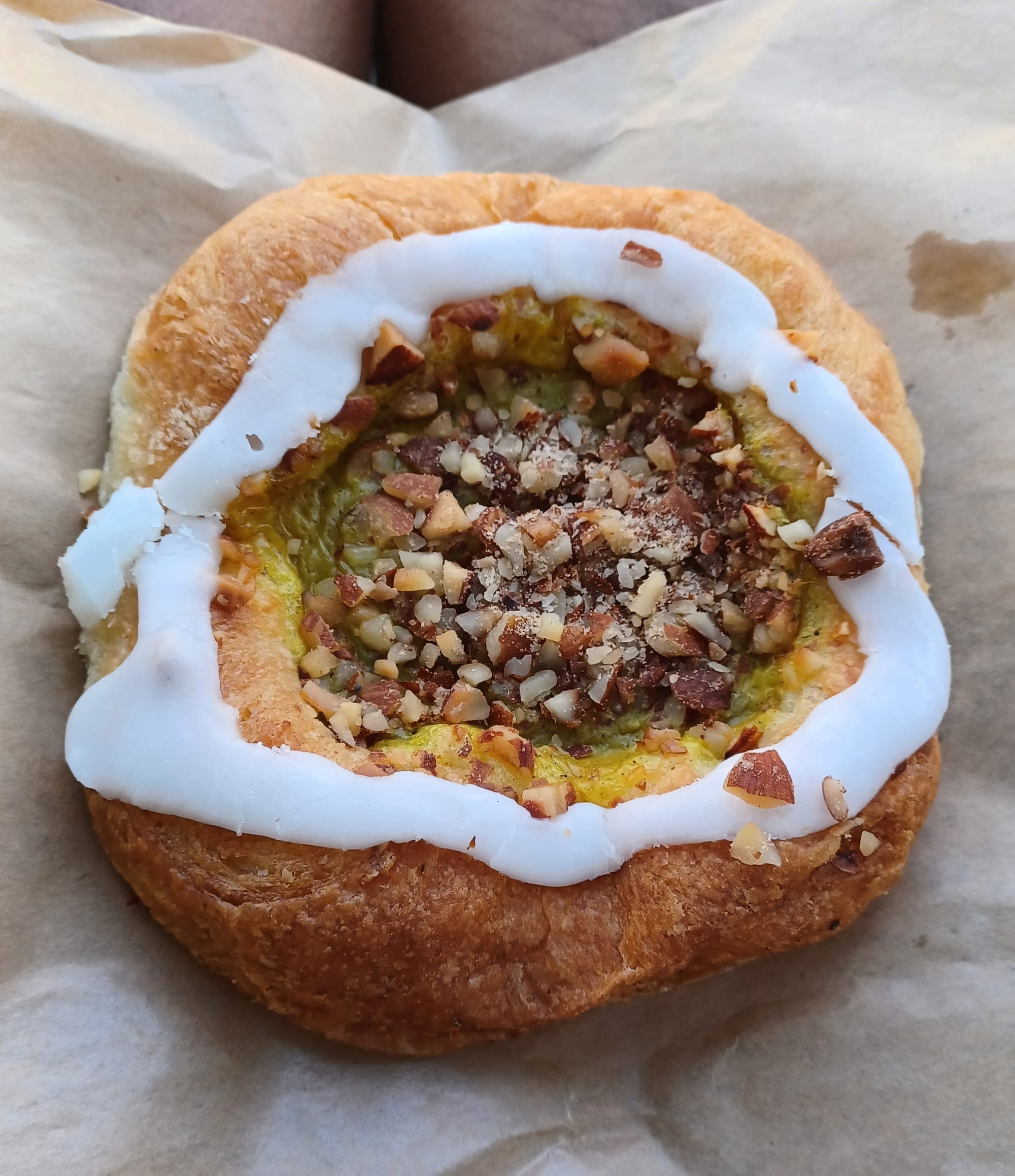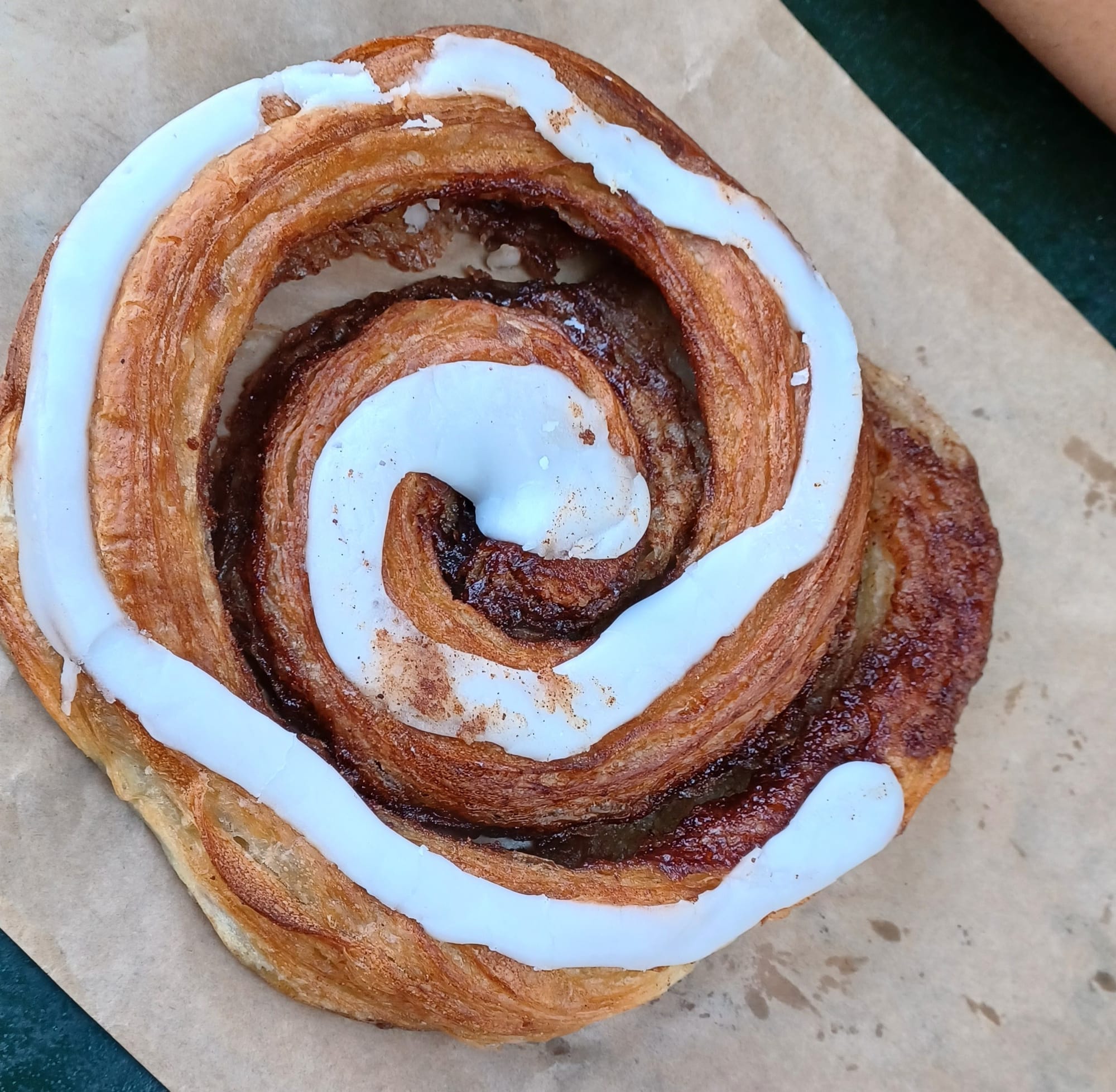 The following day, we felt like a mid morning snack so found ourselves back at Bistro Verde to try some of their pastries. The traditional Danish pastry is the Spandauer (pastry with vanilla custard and roasted almonds), and we also got the cinnamon roll.